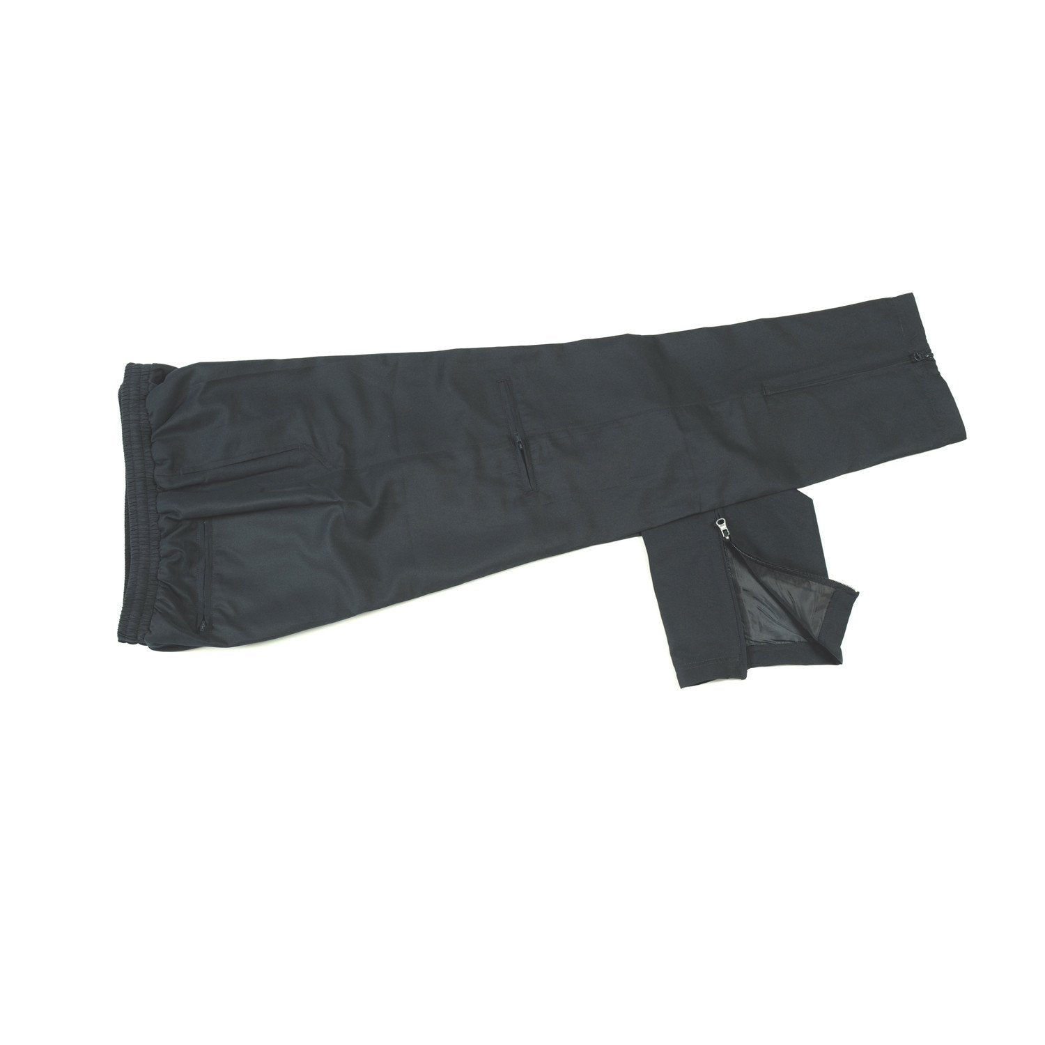 75D 100% polyester, microfibre, ribstop with 70 gsm polyester mesh and 210T taffeta. 2 side pockets, zipped pocket on right lower and one back zipped pocket. Bottom leg adjustable zips.